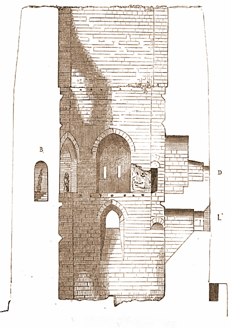 On voit ici l'architecture intérieure de la tour de Houdan. ( source Abécédaire ou rudiment d'archéologie, Volume 2