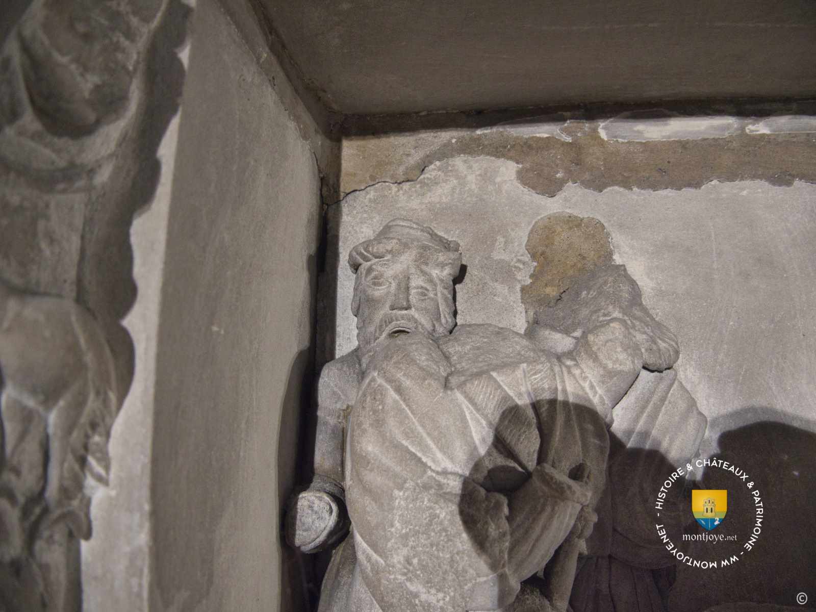 1120 - 1150, c'est ensuite la Nef avec ses demi-colonnes engagées dans les murs, ses travées carrées et croisées d’ogives à la voûte auxquelles se rattachent les pignons de l’Ouest et les trois portails.