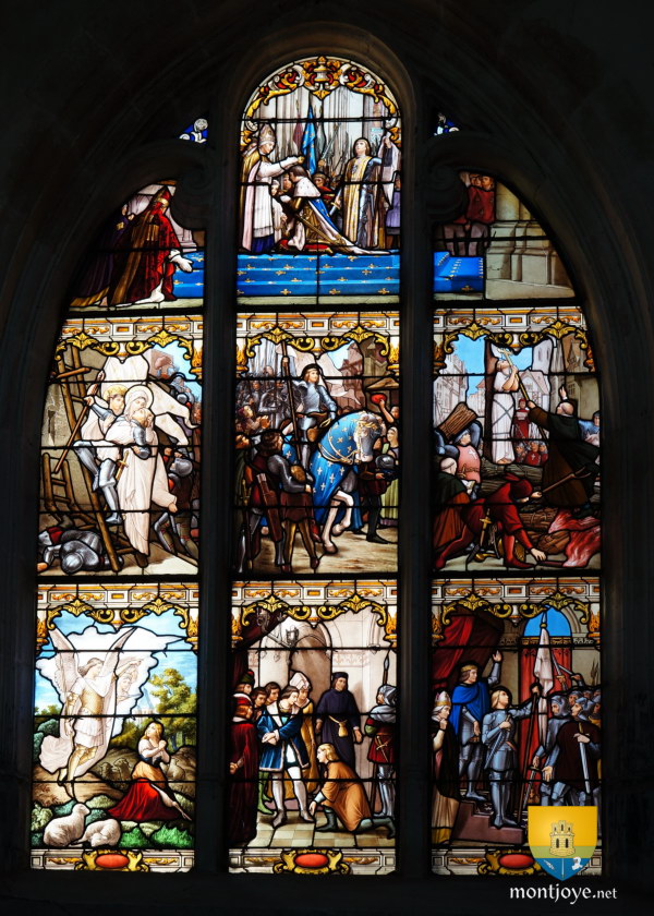 XIXe siècle, elle est restaurée et agrandie. C'est de cette époque que le rare vitrail historié sur Jeanne d'Arc est mis en place, en 1899, malgré qu'elle n'y soit à priori jamais venue. Néanmoins on peut faire un rapprochement avec Charles VII puisque la ville fut reprise par la population aux Anglo-Bourguinons de Guy de la Trémoille ">Trémoille ( ou Trémouille ) le 12 mai 1429 comme le montre une plaque commémorative à l'intérieur de l'église.