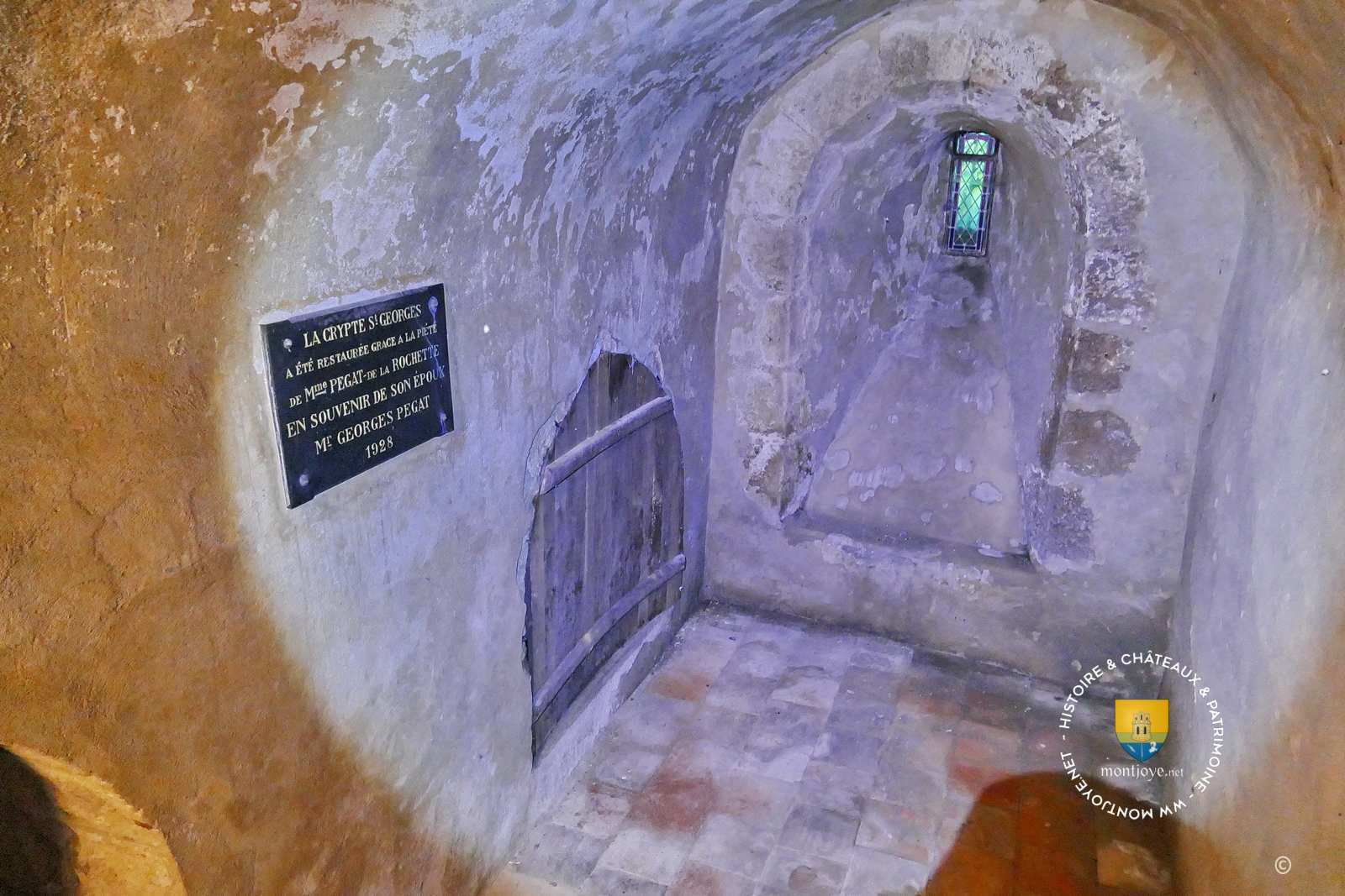 Les escaliers conduisent à la crypte romane du XIe siècle, dédiée à saint Georges. Elle est aussi connue sous le nom de « cave saint Georges » car les vignerons de Billy avaient pour coutume d'y entreposer leur vin.