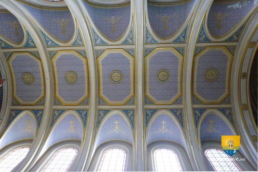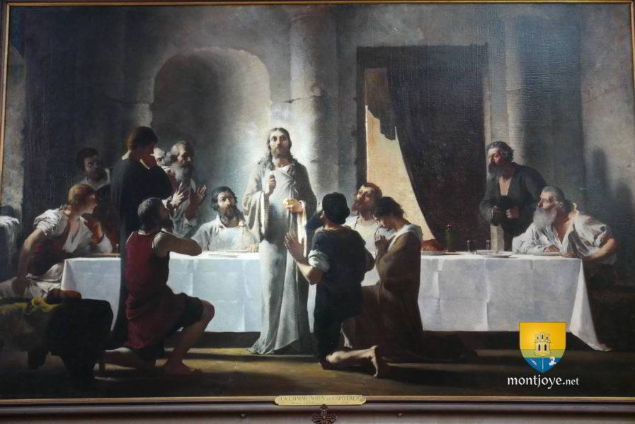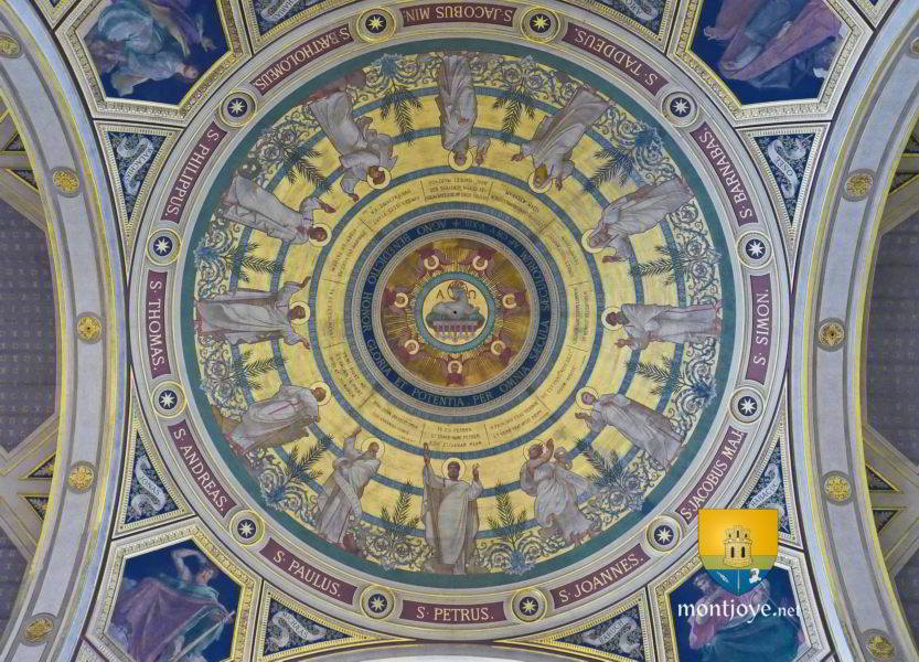 La coupole est traitée dans un style Néo-Byzantin, est ornée de peintures réalisées par Charles Lameire représentant les douze Apôtres vêtus de blanc sur fond d’or autour de l’Agneau. Lameire ( 132 – 1910 ) peignit d’imposants décors religieux et civils dont Notre-Dame de Fourvière à Lyon, l’église de la Madelein, le Trocadéro et l’Hôtel de Ville de Paris.