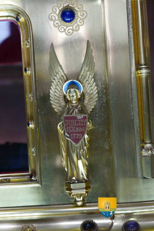 Au-dessus du tyman sont inscrites les trois Vertus théologales : la Foi, l’Espérance et la Charité.