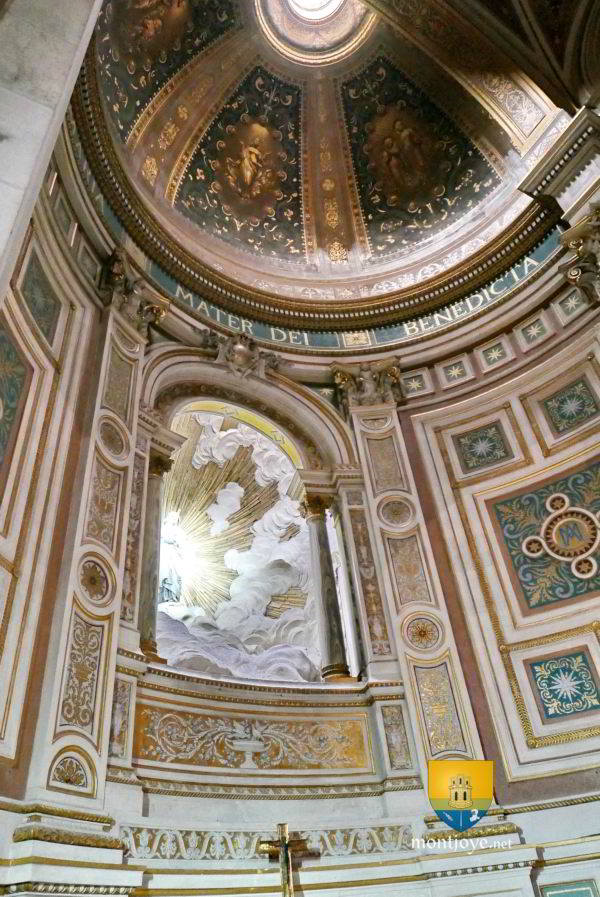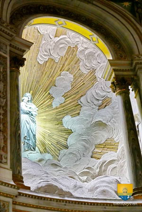 La chapelle axiale est dédiée au culte marial. Elle est organisée autour d’une composition statuaire centrale d’inspiration baroque, faisant apparaître la Vierge à l’Enfant nimbée de nuages et auréolée de rayons. Elle est l’œuvre du sculpteur Jean-Marie Bonnassieux, qui fut pensionnaire à la Villa Médicis et Grand Prix de Rome.