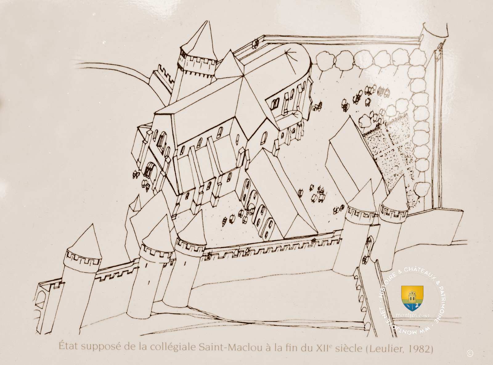 1159, fondation de la collégiale, Henri Ier comte de Champagne fonde, dans la chapelle Saint-André de son château un chapitre de chanoines sous le vocable de Saint-Maclou, Ecclesia sancti Machuti. La tour porche est réutilisée comme clocher, ce qui une rare réutilisation militaire en usage religieux.