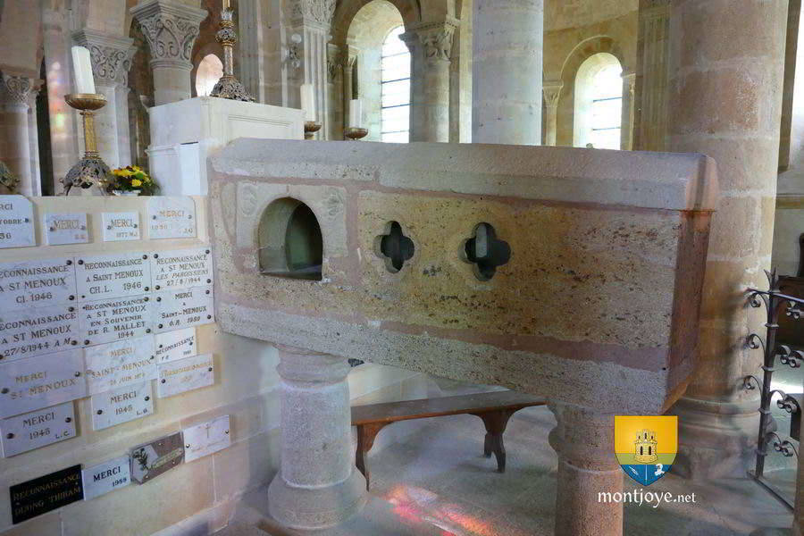 L'église de Saint-Menoux est située sur la commune de Saint-Menoux, dans l'Allier, en plein cœur du Bourbonnais dans le pays de Souvigny. C'est une église de l'art roman de type bourguignonne en grande partie, avec un narthex du Xe siècle et des références à l'Abbaye de Cluny. Dans le chœur de l'église se trouve la débredinoire, sarcophage contenant les reliques de Saint-Menoux. Ce sarcophage est percé d'un trou dans lequel les simples d'esprit passent la tête afin de recouvrer la santé mentale.