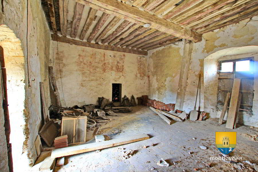 « Un puits dans la cour, l'eau à 4 mètres de profondeur et très saine d'après la déclaration de 1762. Et un grand pressoir, un arbre où il y six grands morceaux de bois réunis en un monté sur jumelles de bouquet, une vis qui se conduit à bras au moyen d'une harasse ; un beau mettage garni de ses blos, planches et aiguilles, une belle auge en pierre contenant six hectolitres avec un pelage en pierre ; le tout contenant six travées de bâtiment couvert en paille. »