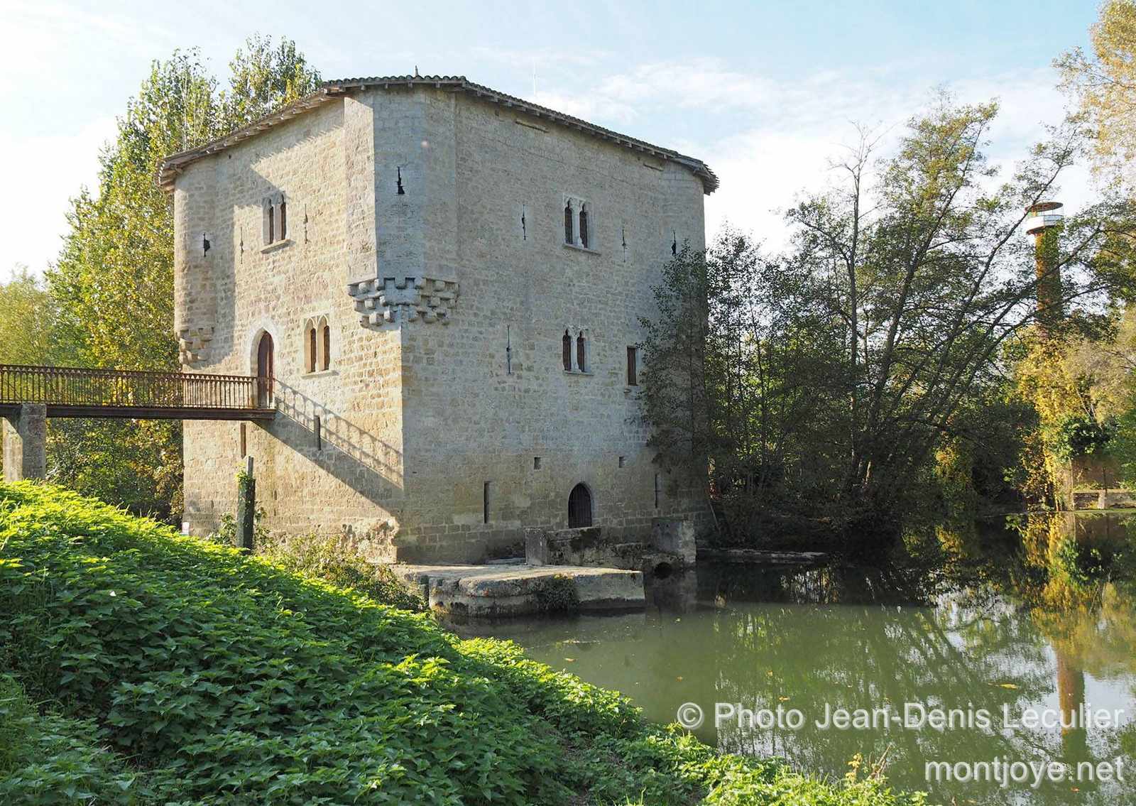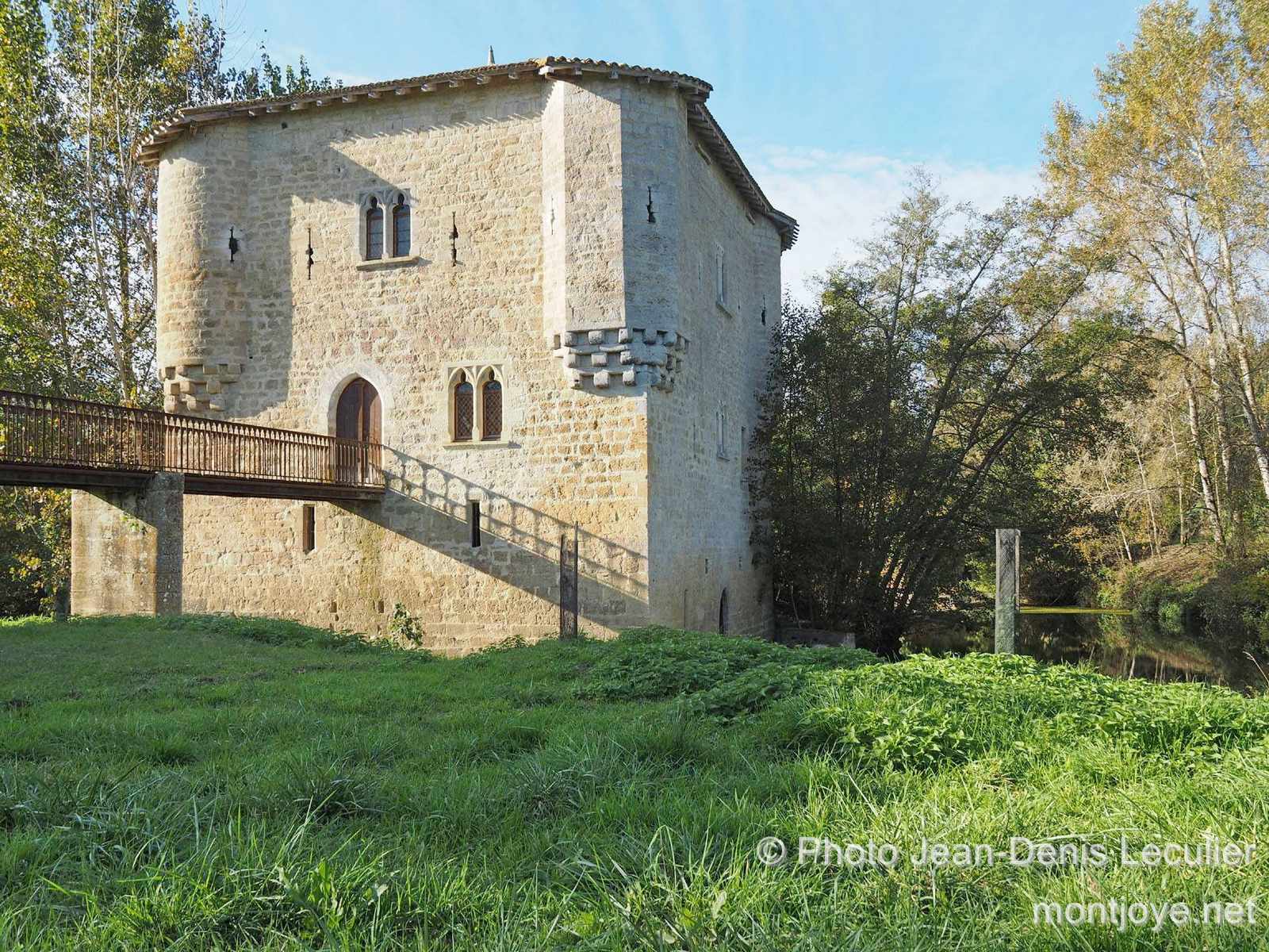 Le bâtiment est rectangulaire, 12 mètres sur 15 mètres, de l'autre côté de la rivière et percé de meurtrières , a une épaisseur de paroi de presque deux mètres et était à l'origine entièrement entouré d'eau. Seule une étroite passerelle en bois donnait accès au premier étage. À l'étage supérieur, en plus des quatre coins du bâtiment, de petites tourelles autrefois hexagonales ont été ajoutées, améliorant encore les défenses. Aujourd'hui, une seule tourelle a la forme d'origine, tandis que les trois autres ont été converties en tours rondes. Des installations similaires n'existaient dans le Bordelais qu'à Cleyrac et à Piis .