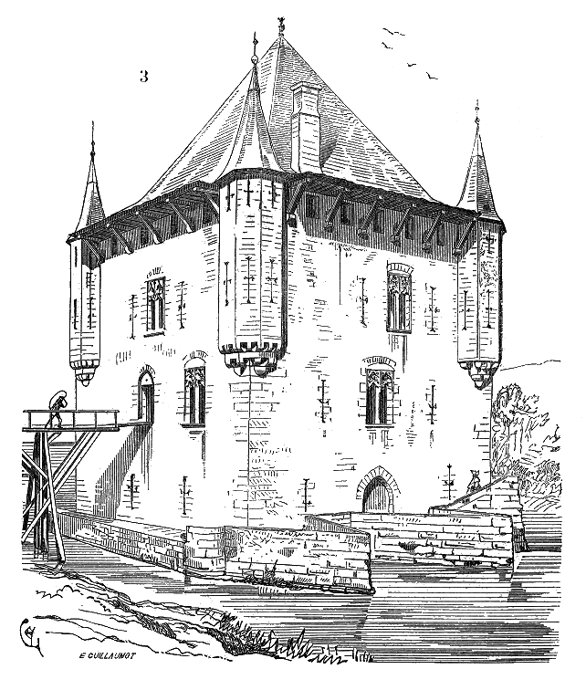 Outre les villes, dont les enceintes étaient presque toujours très-importantes, les châteaux capables de soutenir victorieusement de longs sièges dirigés par d'habiles capitaines commandant à de nombreuses troupes, les monastères qui s'entouraient d'épaisses murailles percées de meurtrières et couronnées de créneaux, les églises qui devenaient souvent le dernier refuge des habitants des villages, — les fermes, enfin, étaient de véritables forteresses, et les moulins, à cheval sur les cours d'eau, pouvaient résister, comme les châteaux, à de vigoureuses attaques; ils étaient, d'ailleurs, presque toujours placés assez près des forteresses ou des monastères auxquels ils appartenaient; quelquefois même ils étaient enveloppés par l'enceinte des villes ou des châteaux. Ces intéressants monuments ont été jusqu'à présent fort peu remarqués.