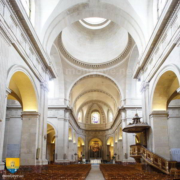 Située au terme d'une perspective qui part de la base de la place d'Armes, du côté Nord, l'église, emblème du style classique le plus pur, se caractérise par :