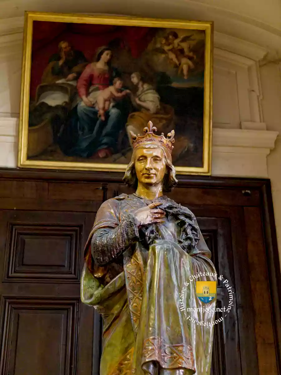 Le décor de l'église est assez sobre, mais présente des attributs royaux ainsi que la Couronne d'épines avec les clous de la Passion. L'orgue, construit par les Jacquet de la Guerre au XVIIe siècle, a été remplacé par un nouvel instrument réalisé par François-Henri Lesdop en 1744. Durant la Révolution, l'église a été dépouillée de presque tout son mobilier, y compris l'orgue. Seules les statues de la Vierge et de Sainte Geneviève dans le transept ont survécu en tant que statues de la Liberté et de l'Égalité.