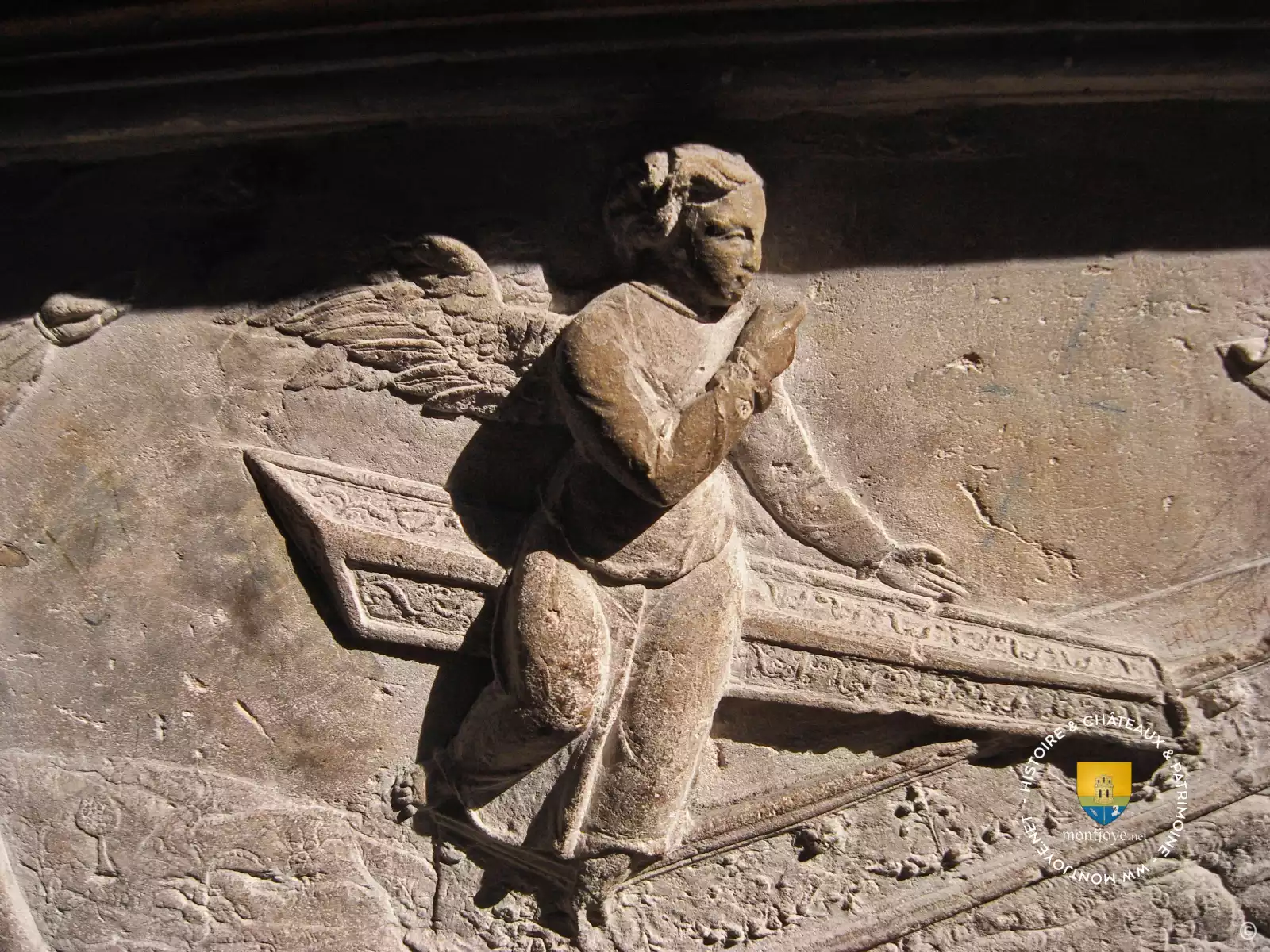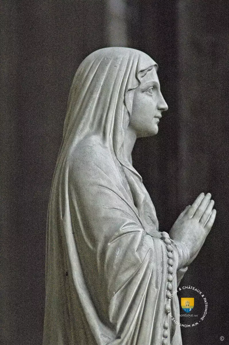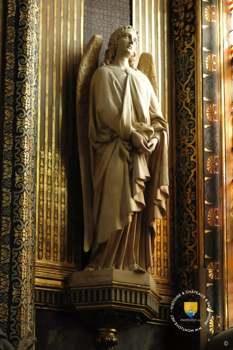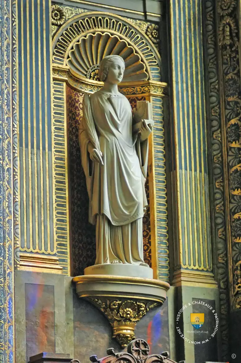 Le mausolée de Colbert, par Coysevox. Le ministre est représenté ici revêtu du costume de l’Ordre du Saint-Esprit, l’épée au côté gauche, dans l’attitude de la prière : les mains jointes, longues et fines, sont admirables, le visage est d’une gravité sereine. De chaque côté du monument, une statue de femme assise : à gauche, la Fidélité ; à droite, l’Abondance.