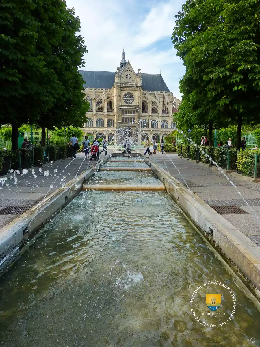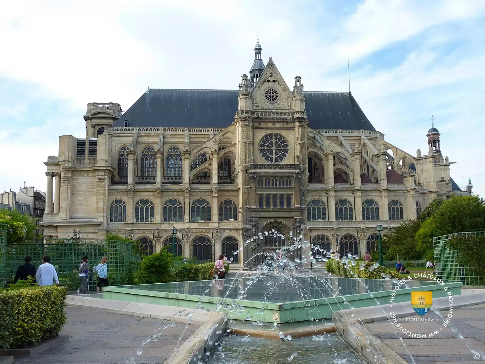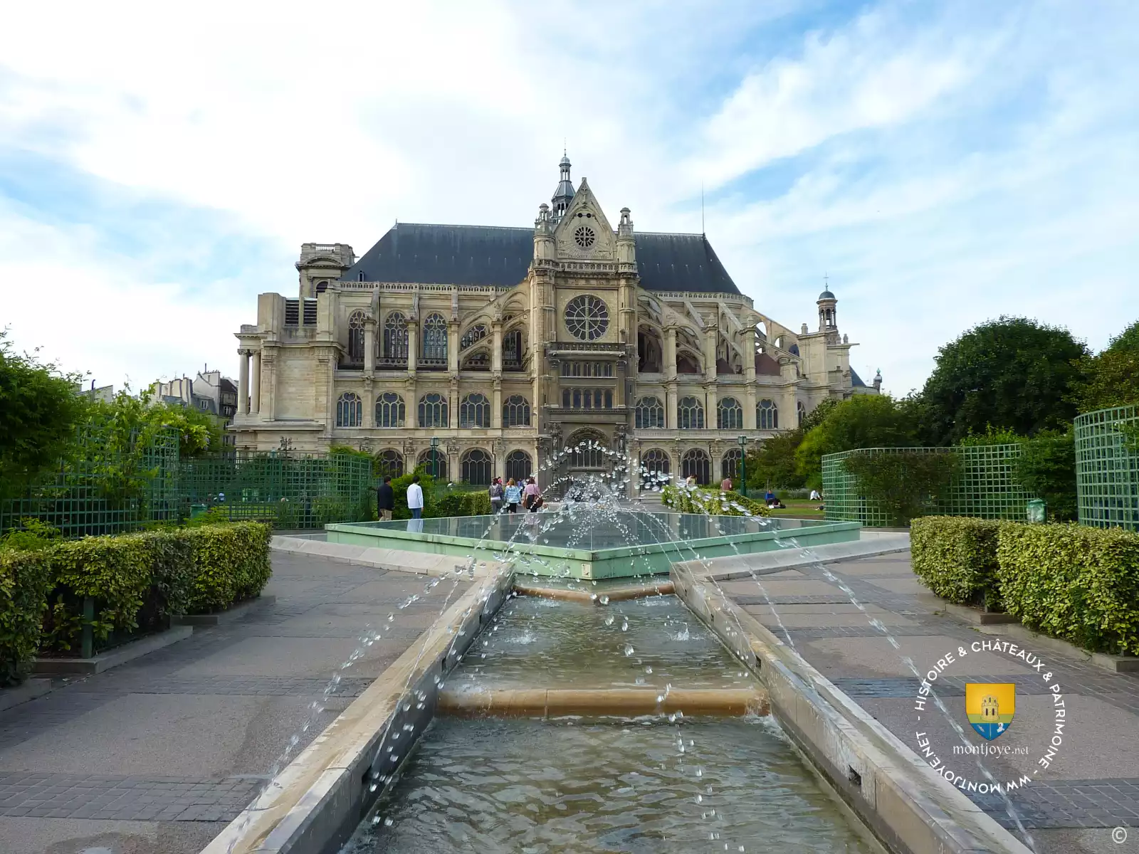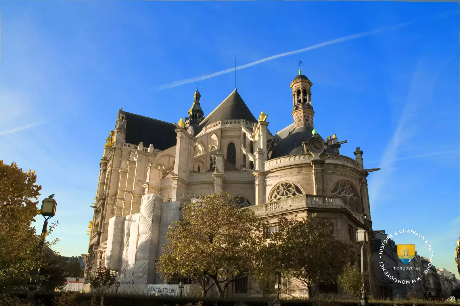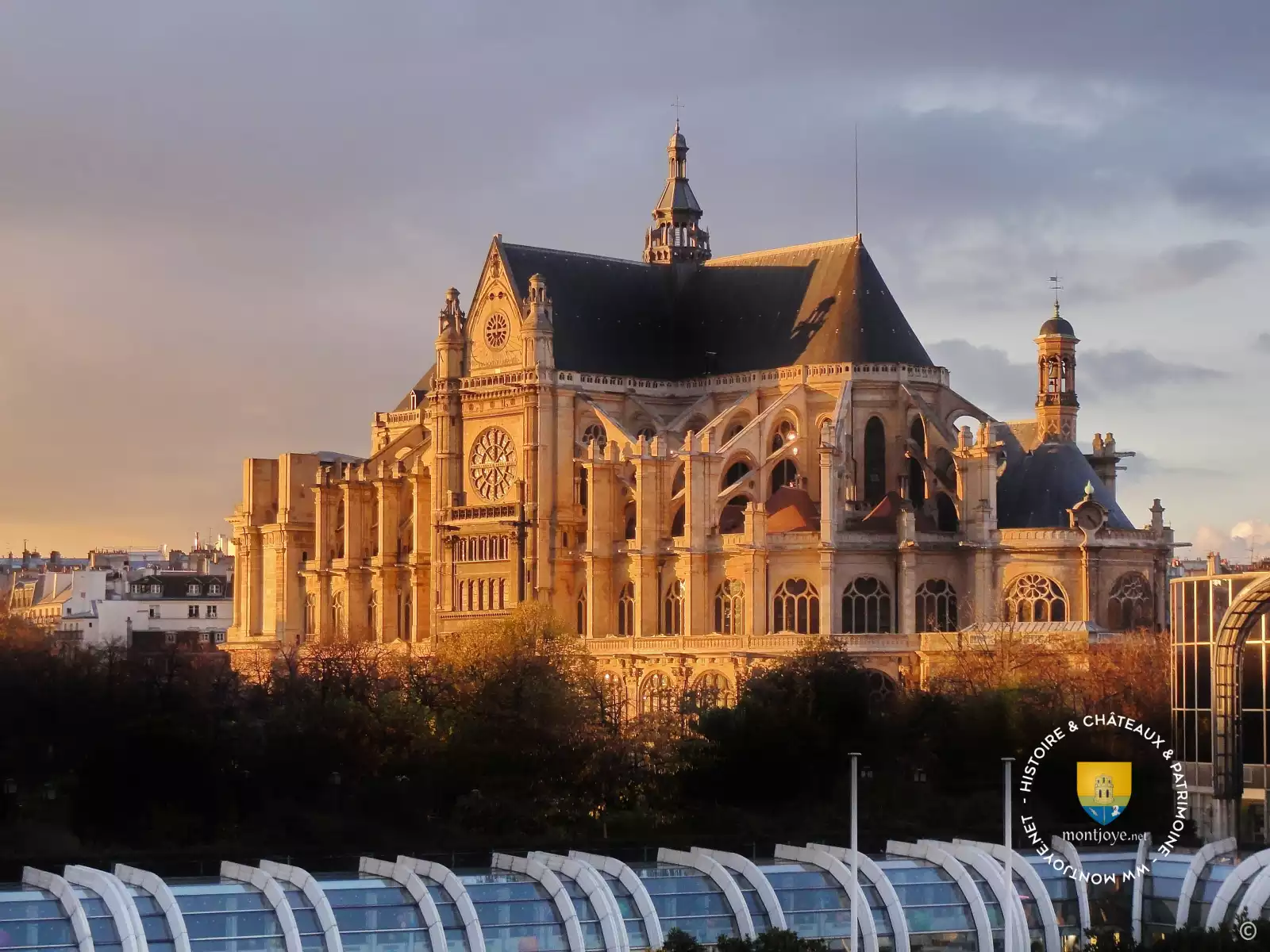 Sur le chemin qui mène de l'île de la Cité à la colline de Montmartre, à proximité de l'enceinte de Philippe Auguste, une modeste chapelle est bâtie en 1213 ; elle devient église paroissiale, consacrée à Saint Eustache, en accueillant des reliques de ce martyr romain, données par l'Abbaye St Denis.