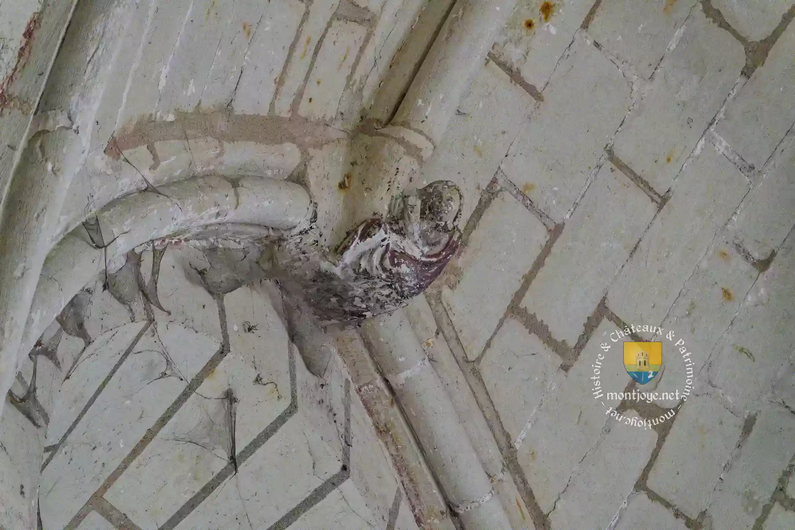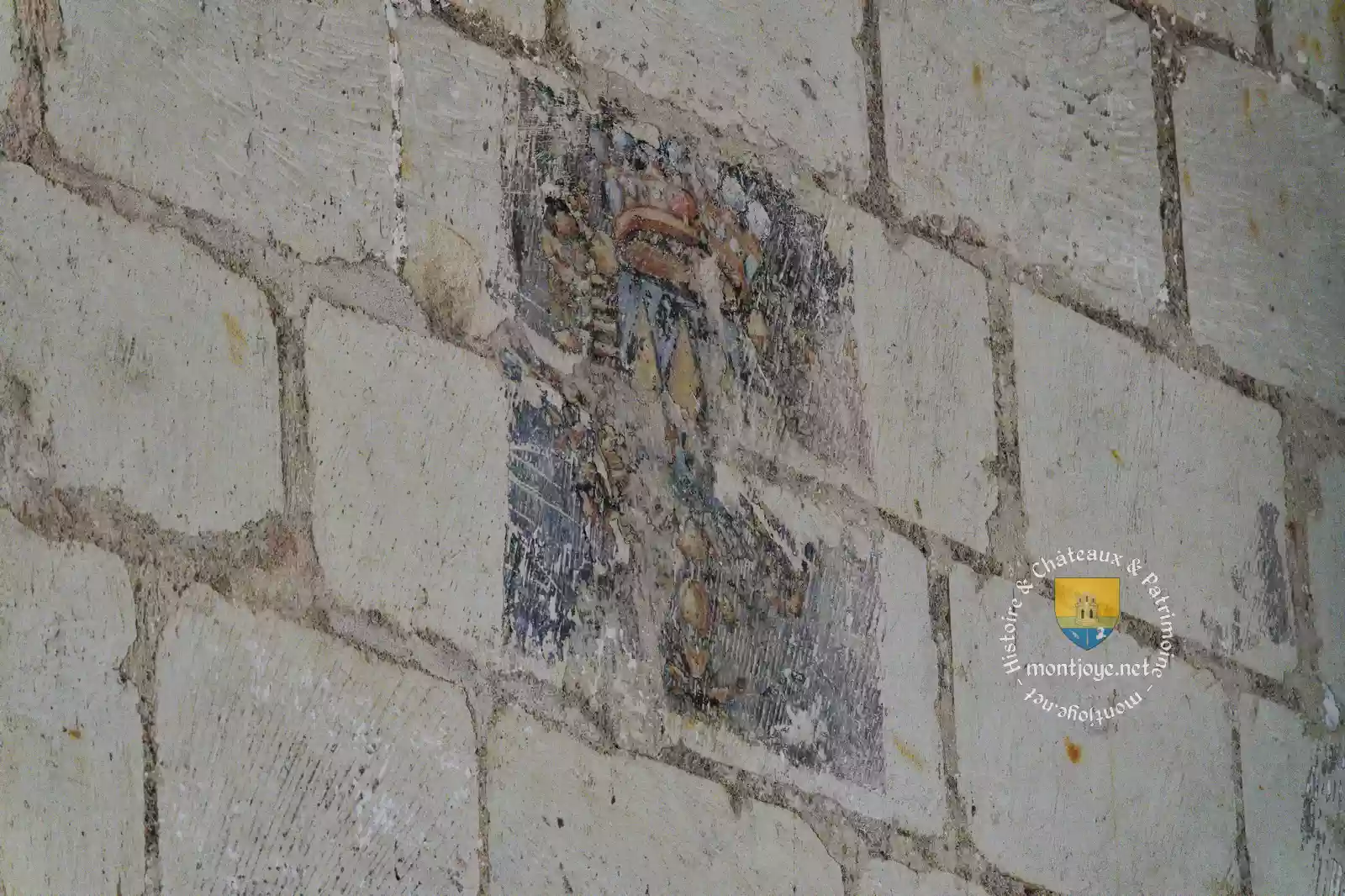 Les blocs en remploi, de part et d'autre de la porte d'entrée, sont ornés de motifs d'entrelacs, de palmes et d'un lion, probablement issus d'une corniche et d'éléments de décoration d'une façade. Le mur nord de la nef est également orné de nombreux graffiti, certains évoquant le monde de la batellerie tandis que d'autres représentent des outils de vignerons. Deux pierres d'attente des morts, constituées d'une dalle d'ardoise reposant sur deux supports en pierre, sont disposées de chaque côté du portail d'entrée pour déposer les cercueils avant les offices. Deux retables, deux tableaux d'autel et deux statues sont également protégés au titre d'objets monuments historiques.