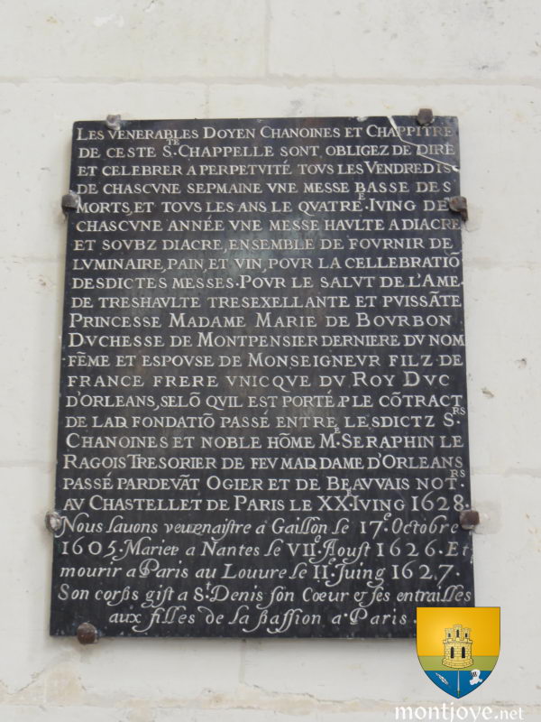 Henri de Bourbon duc de Montpensier, initialement posé sur son tombeau, il est aujourd'hui au centre de la Sainte-Chapelle.
