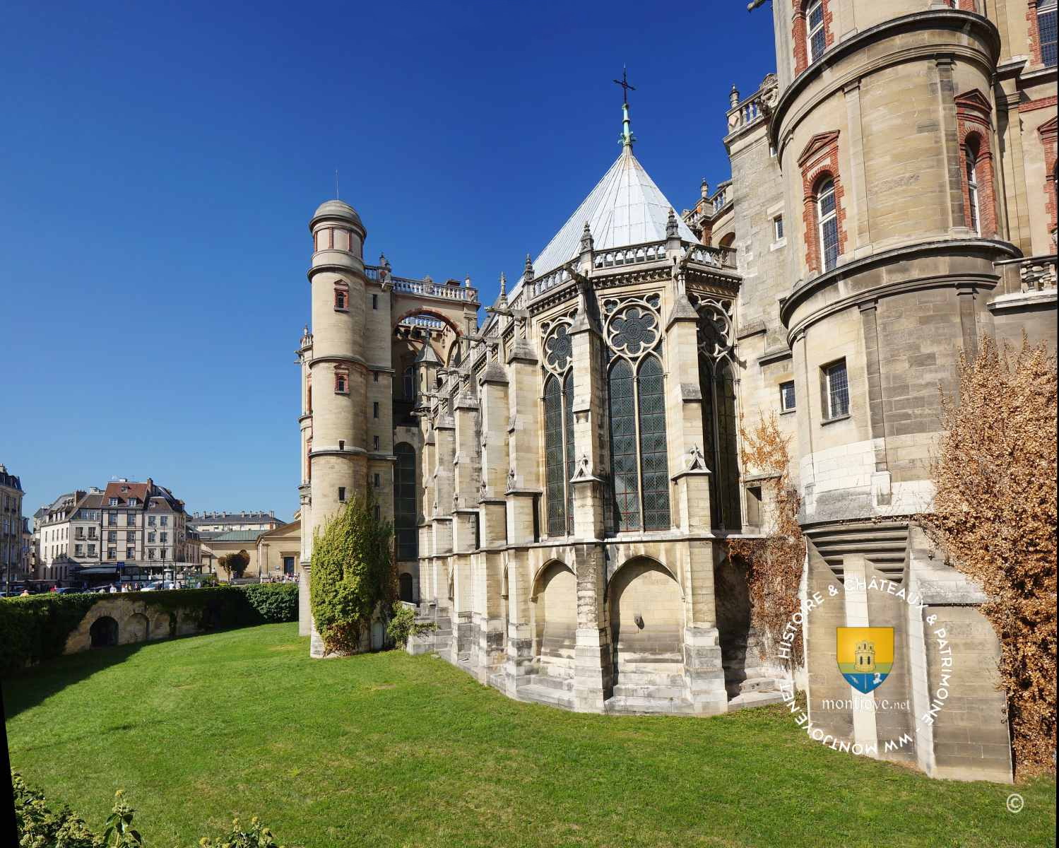 La Sainte chapelle de Saint-Germain-en-Laye est l'une des premières Sainte-Chapelle, construite en 1238 et celle de Paris vers 1248, mais peut-être avec le même architecte de la Sainte-Chapelle de Paris ou la chapelle de la Sainte-Vierge dans l'Abbaye de Saint-Germain-des-Prés, Pierre de Montreuil