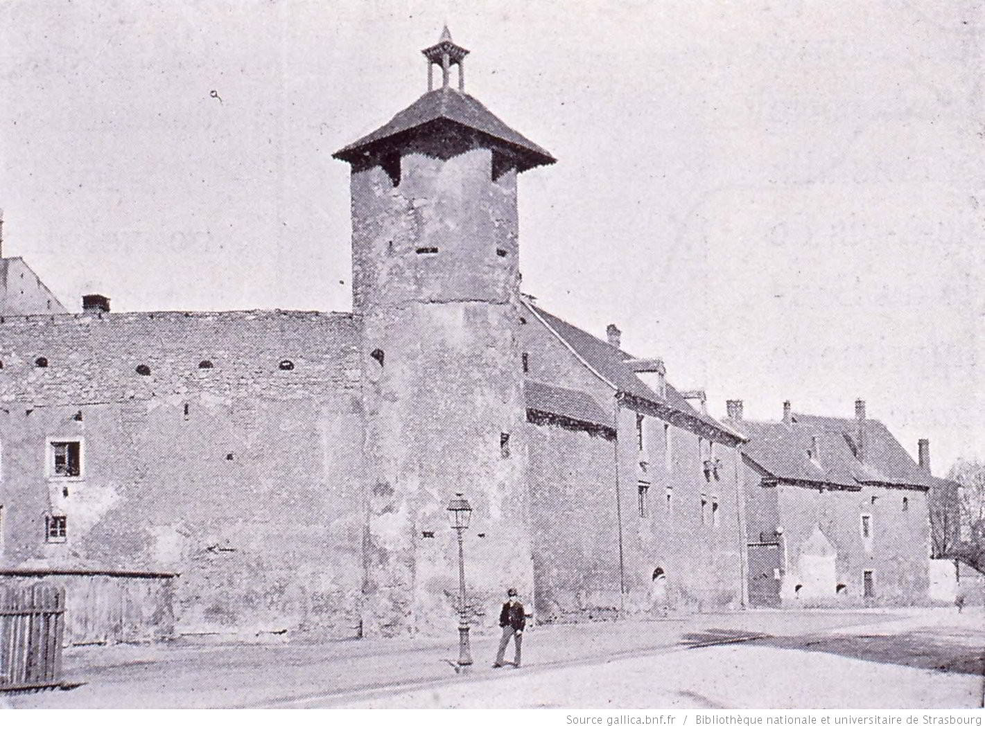 Mulhouse doit sa première enceinte connue vers 1222, considérablement renforcée jusqu'au XIVe avec 6 mètres de hauteur et des murs épais à certains endroits de 2 mètres ce qui est peu fréquent pour une enceinte de ville.