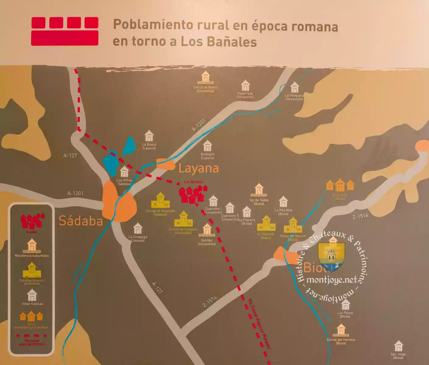 C'est une étape relativement intéressante pour les passionnés de l'époque médiévale, avec une très belle vue sur les plaines alentours même s'il faut observer que le filet anti pigeon est plutôt perturbant. Envisagez de visiter la tour médiévale de Layana si vous êtes intéressé par l'histoire et l'architecture médiévale en Espagne, car la ville ne propose pas d'autres visites, l'église était fermée. Près du village, on peut trouver des ruines d'une cité romaine très intéressantes. Il y a notamment de nombreux piliers d'un aqueduc et des thermes romains.