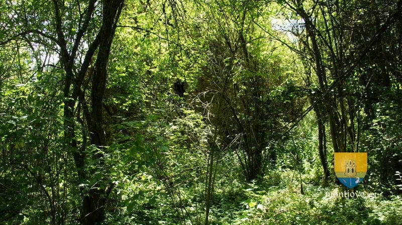 Situé dans un petit îlot forestier, accessible en traversant les champs, aucune indication d'une propriété privée mais ce n'est pas à exclure. Environnement boisé et escarpé.