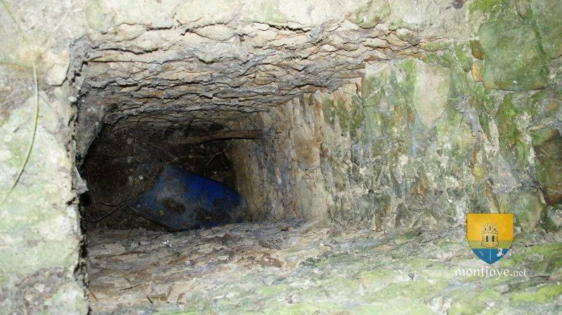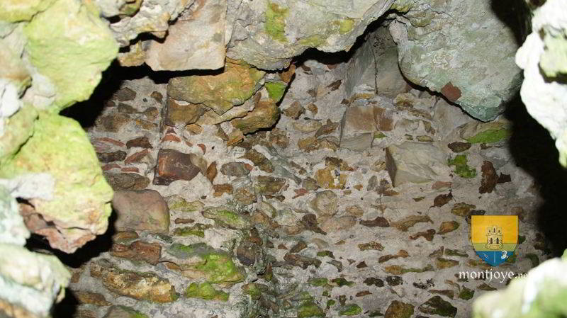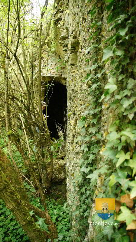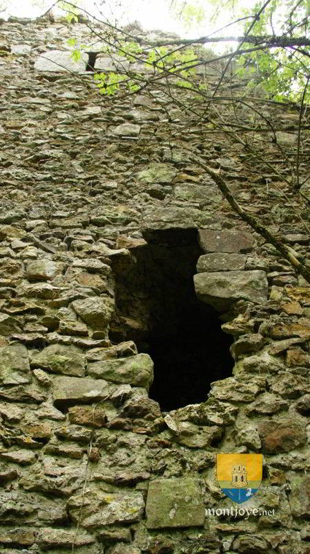 Situé à proximité d’une ancienne route romaine, partiellement en parallèle de la D4, il y a dans un ilot forestier un reste assez étrange de fortification. Entouré de fossé assez profond et très probablement d’une motte castrale assez diminuée mais visible, il y a un tout un pan de mur avec deux meurtrières dont une semble plus ancienne que l’autre.