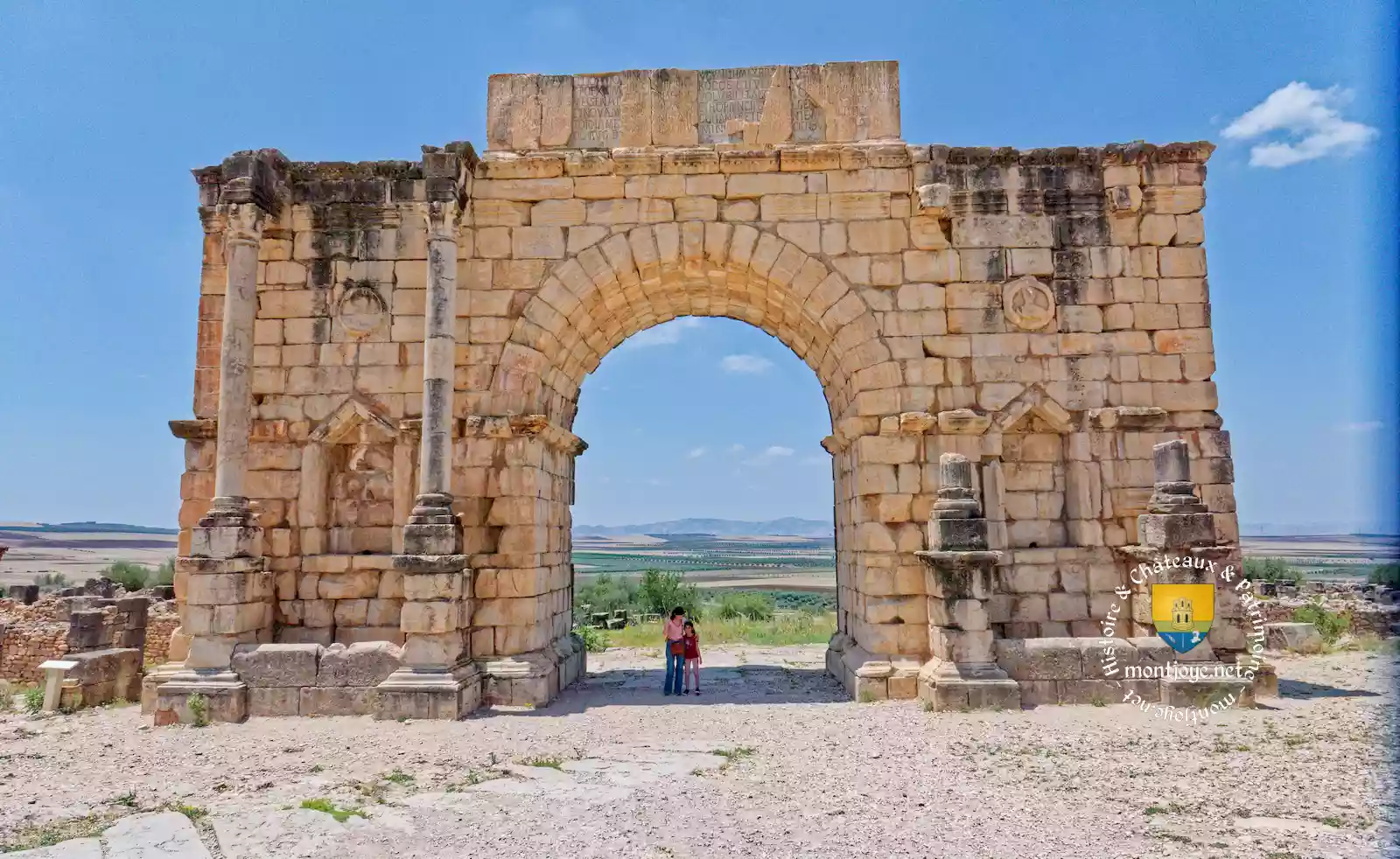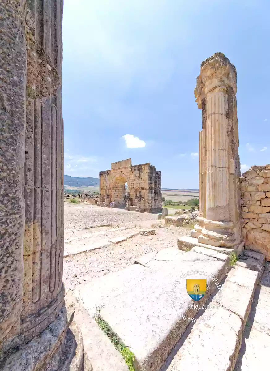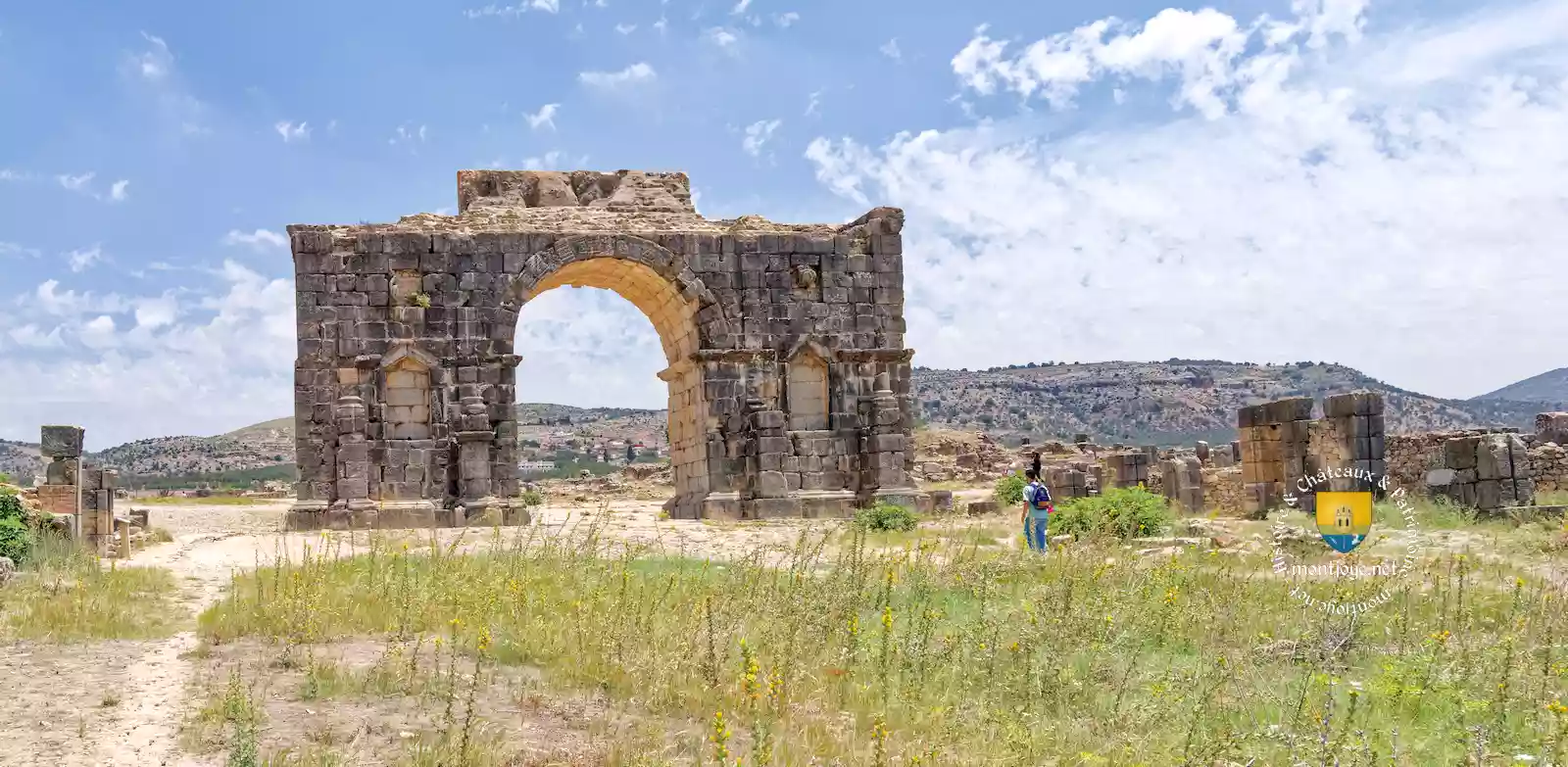 Comme dans de nombreuses villes romaines, Volubilis possédait également des arcs de triomphe, des structures monumentales érigées pour célébrer des victoires militaires et honorer des personnalités importantes. L'Arc de Caracalla, l'un des arcs les plus connus de Volubilis, a été construit en l'honneur de l'empereur Caracalla, pour commémorer ses victoires en Maurétanie.