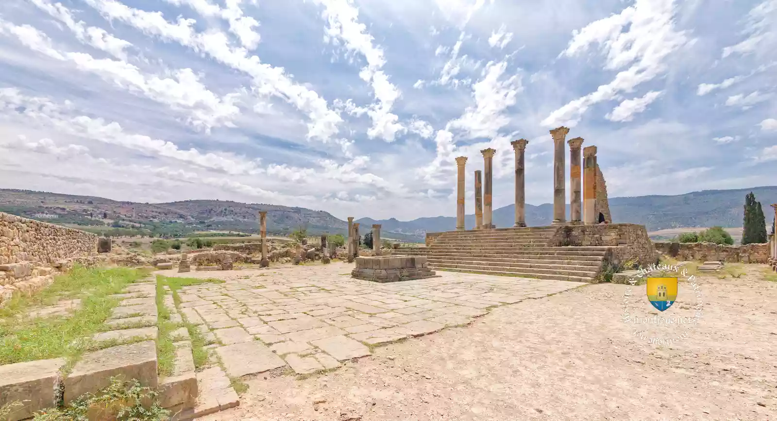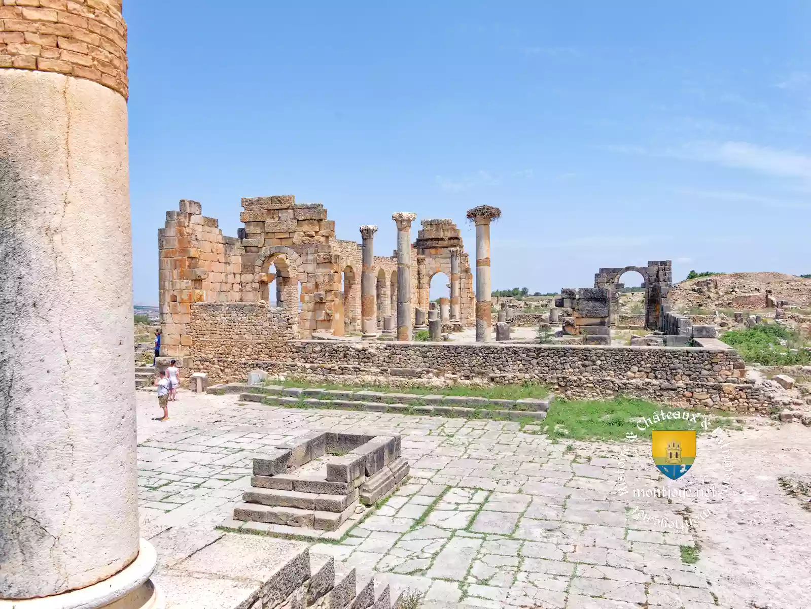 En explorant les temples de Volubilis, vous pourrez vous imaginer les anciens rites religieux qui se déroulaient ici. Le Capitole, dédié à la triade capitoline de Jupiter, Junon et Minerve, est un exemple magnifique de l'architecture religieuse romaine. Le Temple d'Apollon, avec ses colonnes majestueuses, offre une vue imprenable sur les environs.